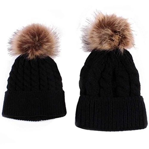 Longra Mama und Baby stricken Wolle Winter halten warme Mütze (Black)