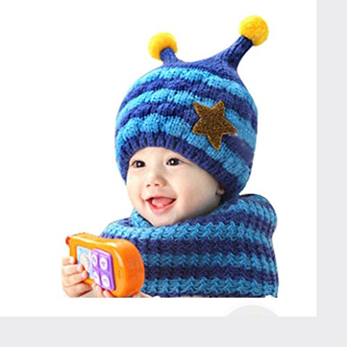 Babybekleidung Hüte & Mützen Longra Niedliche Winter Baby jungen und Mädchen Kleinkind Bee entwerfen wolle Hut Kapuzen Schal Ear Flap Hüte Mützen (Blue)