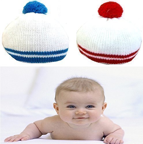 Verkauf Baby Mütze Neugeboren Kleinkind Niedlich Mit Bommel Gestreift Blau Rot Mädchen Jungen Hut - Rot