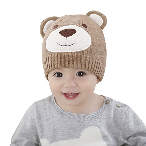 iPretty Mütze Kindermütze Strickmütze coole Bär Mütze für Baby Mädchen Jungen Kinder Schnee Hut Wintermütze Kids mit wärmendem Ohrenschutz-95M