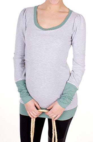 Milchshake - süßes Umstands-und Stillshirt - Langarm - "Alegra" - grau-mint - Größe XL